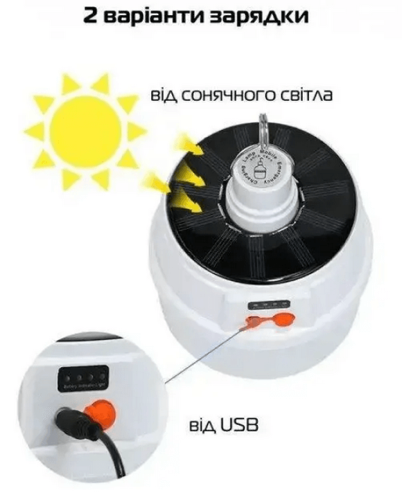 Кемпінговий ліхтар з акумулятором і сонячною батареєю буде дуже корисним під час відсутності електроенергії, а завдяки кріпленню у вигляді "гачка", ліхтар може застосовуватися будь-де: на дачі, на риболовлі, в кемпінгу і т.п.